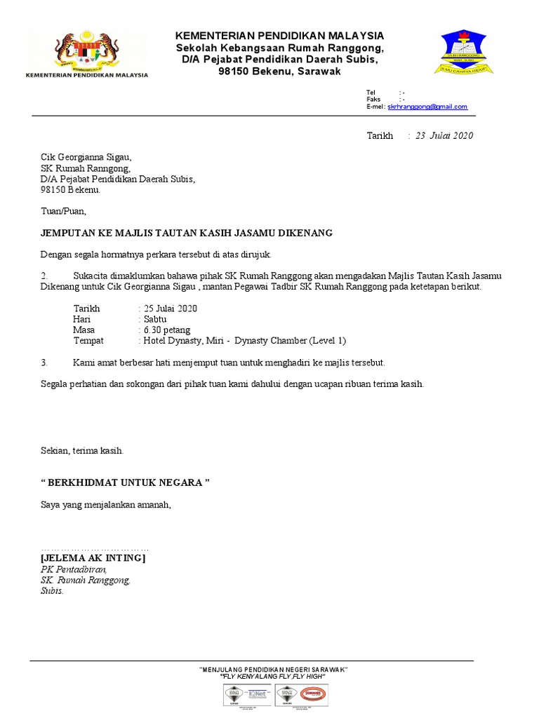 Contoh Surat Jemputan Majlis Persaraan Contoh Surat Jemputan Download Kumpulan Gambar Ada Banyak Contoh Surat Pernyataan Persetujuan Yang Bisa Ditemukan Dan Ditiru Sodaayoneh. Contoh Surat Jemputan Majlis Perpisahan Contoh Surat. SEKOLAH KEBANGSAAN SINAR BAHAGIA FELDATAIB ANDAK 81000 KULAIJAYA JOHOR Telefon Pejabat.